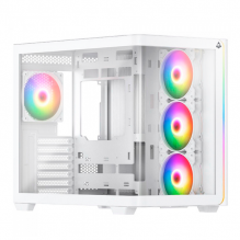Gabinete Munfrost Hirow / Cristal Full Curve Templado / ATX-Micro ATX-Mini ITX / 4 Ventiladores ARGB Incluidos / Blanco